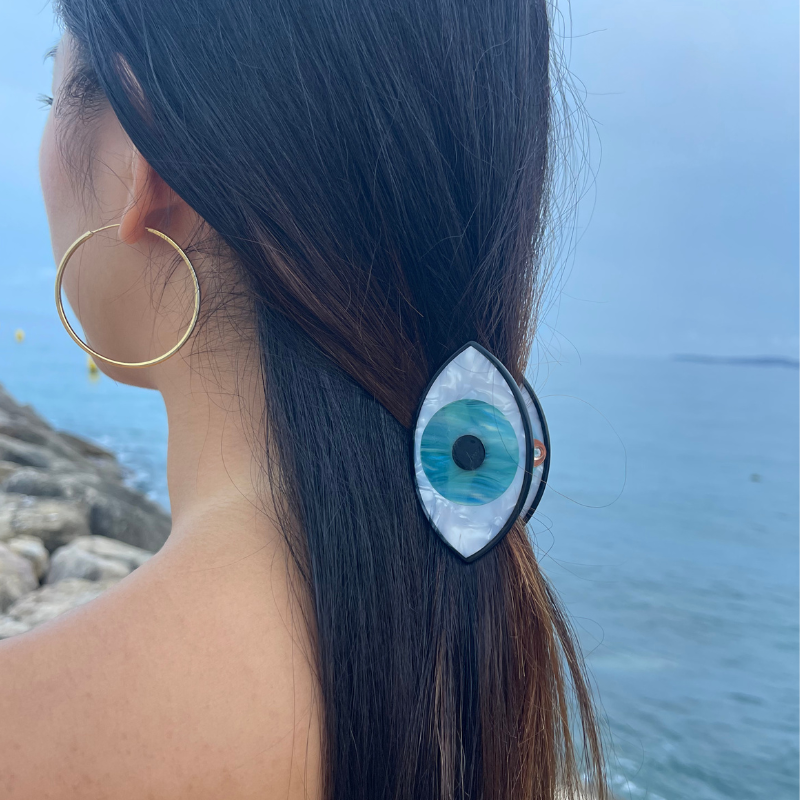 Symbole de protection et d’élégance, la pince Aïn s’inspire de l’œil porte-bonheur.